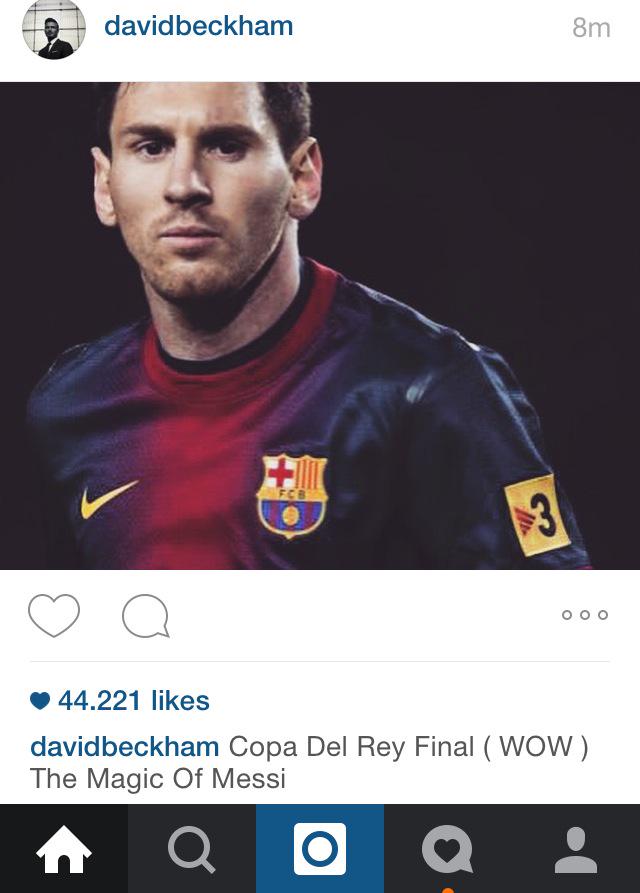 “Final Copa del Rey (WOW). Magis seorang Messi!" tulis mantan kapten The Three Lions tersebut di akun Instagram pribadinya, Senin (1/6/2015).